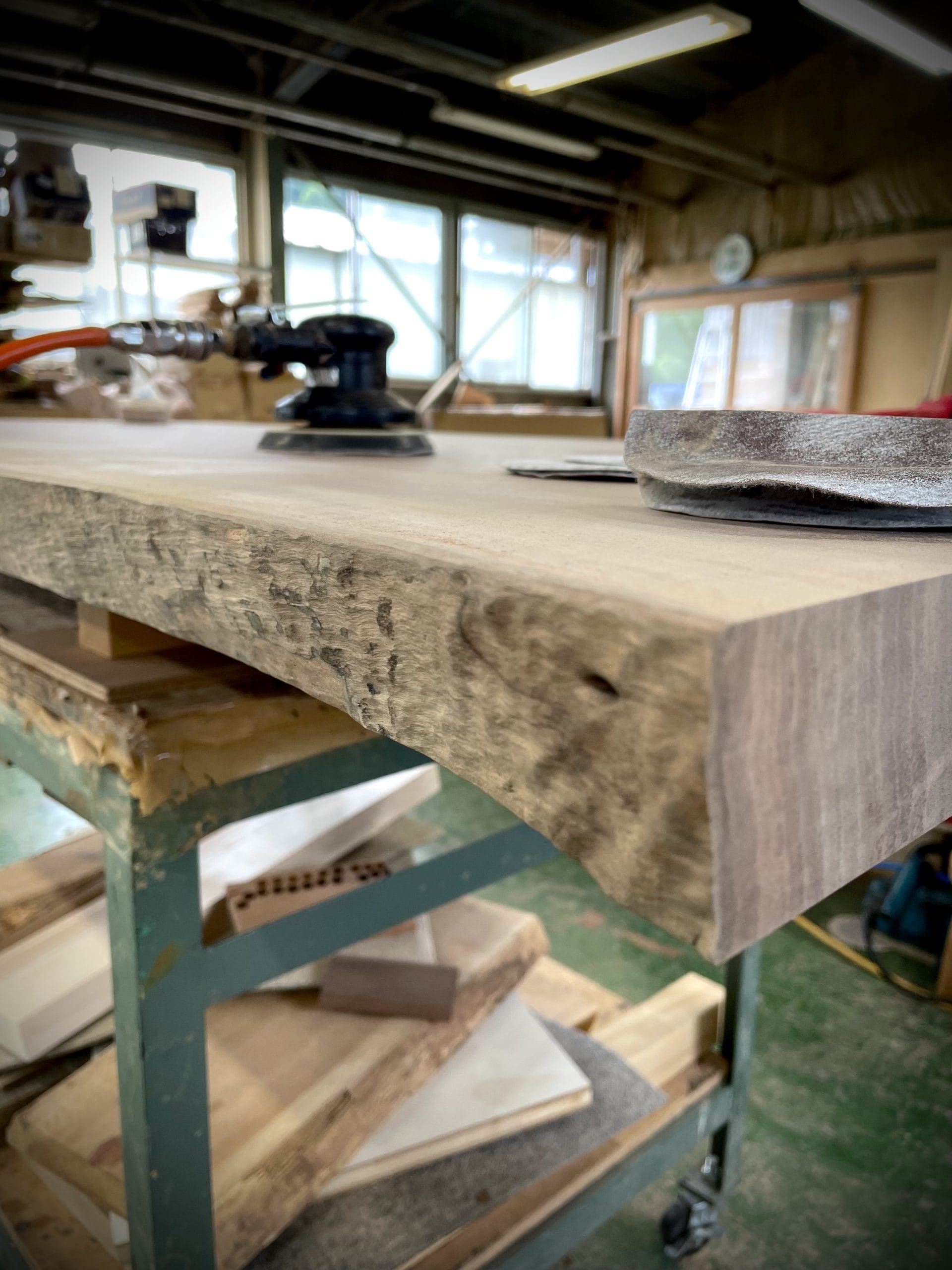 天板の耳(外縁)も、できるだけ自然な状態で残すようにします。削る部分と残す部分のバランスを見極めながら、慎重に機械や手作業で加工していきます。