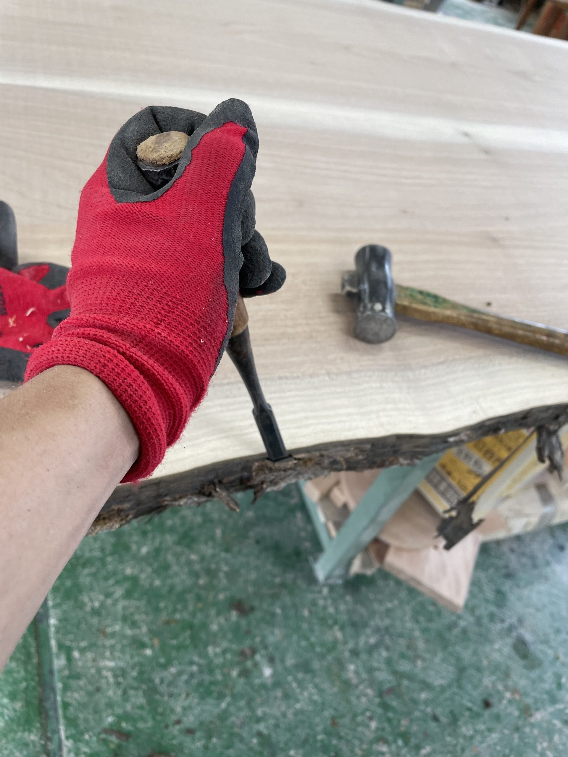 まだこの段階では、仕上げ用の美しい面は現れていませんが、木取りの際に描いた完成像に向けて、一歩ずつ近づいている状態です。