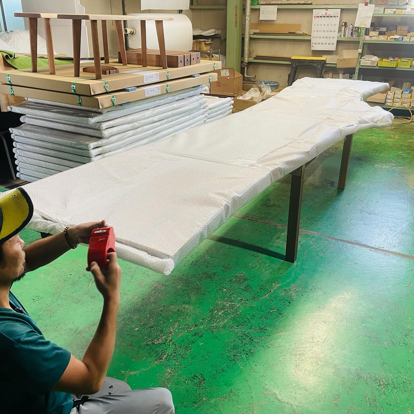 午前中は4mある特注のテーブルの梱包。