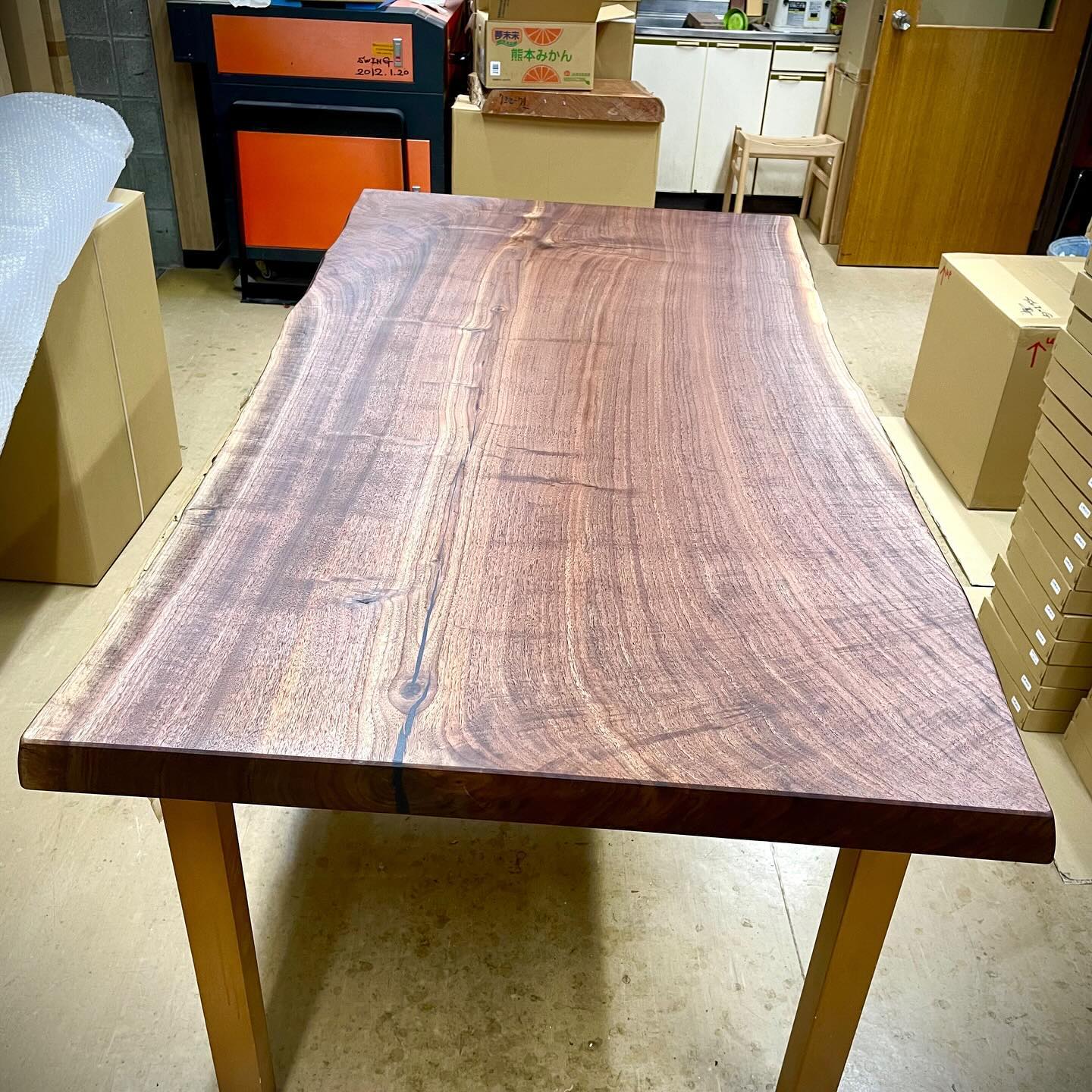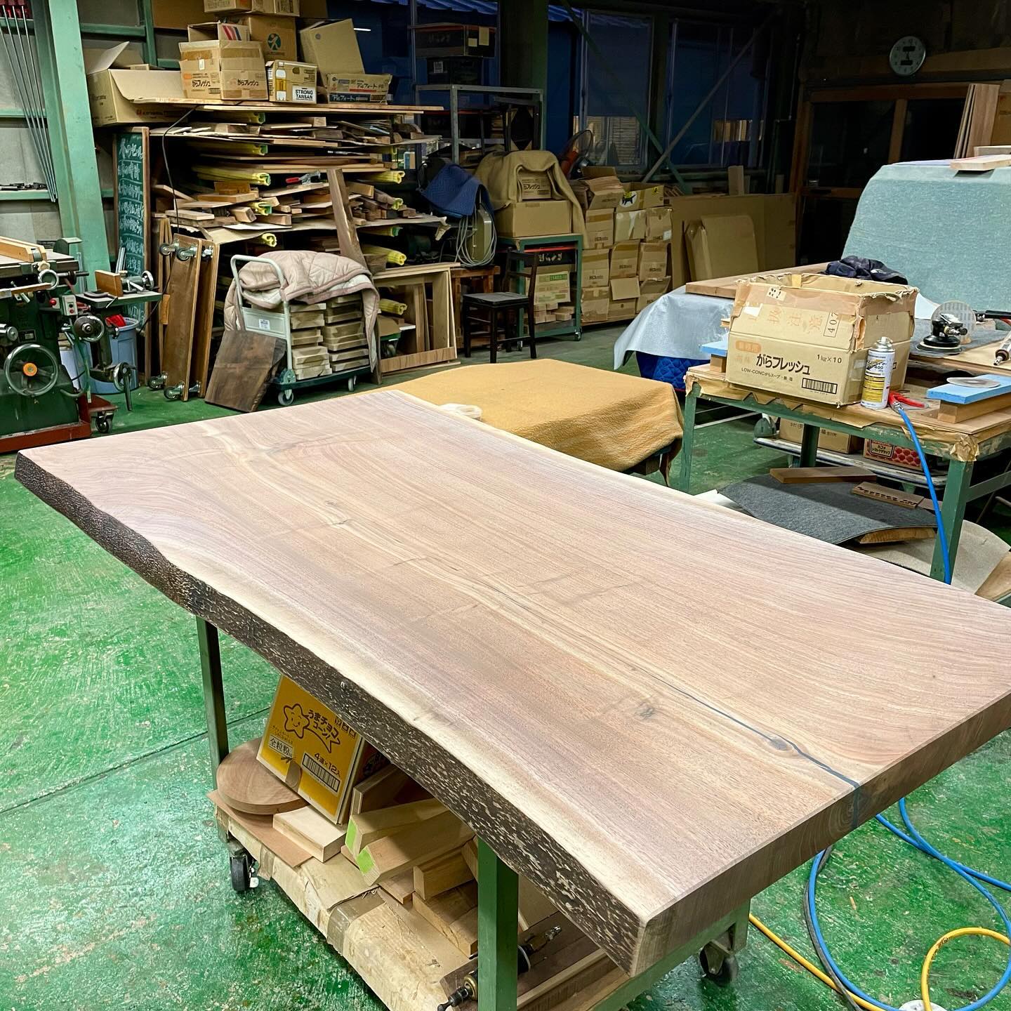 昨日は工房で自分のお店に入荷予定のブラックウォールナット一枚板テーブルの制作を致しました。
